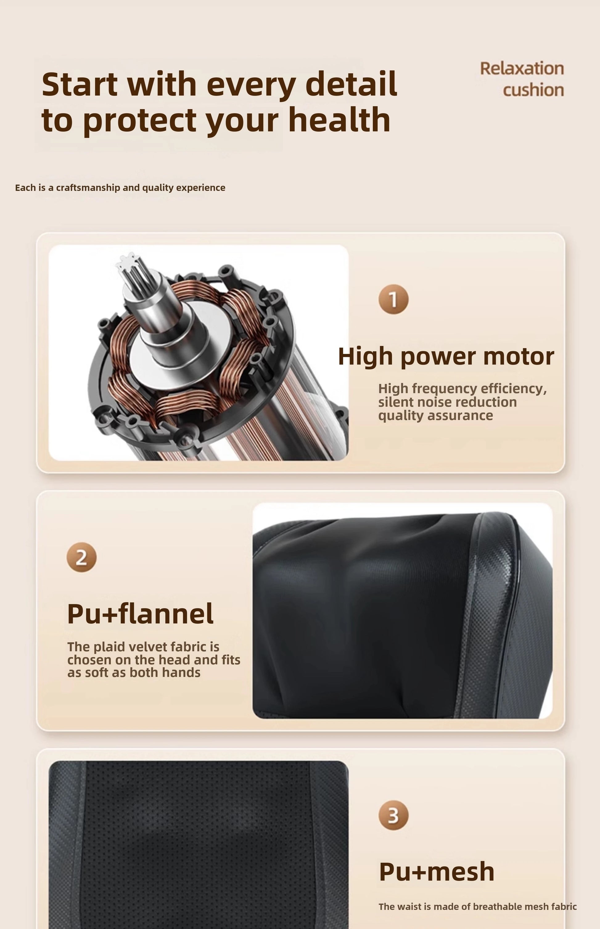 4-Zone Deep Massage – Targets neck, shoulders, waist, and back with synchronized kneading.