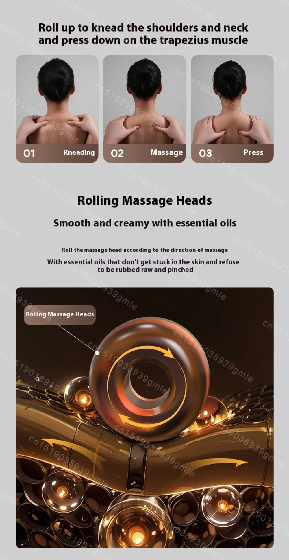 Quad-Point Kneading – Deep kneading nodes target neck, shoulders, and trapezius tension.